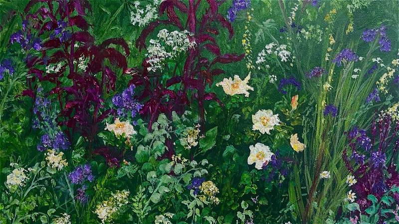 Nature, gardens, and bouquets are a huge source of inspiration. Her paintings are a mix of reality and imagination often referencing moments, scenes and feelings provoked by childhood memories. She also has some might say an unhealthy obsession with Chinoiserie vases.