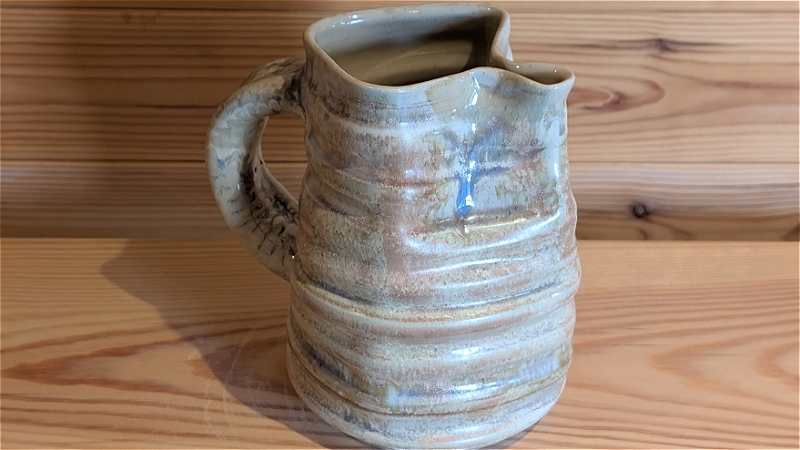 Her primary drivers as a ceramicist are the challenges of wheel throwing, and an interest in glaze chemistry. A determination to produce pots which are beautiful and useful leads her to an evolving awareness and appreciation of form. The ‘mixed aspirations’ are therefore to make beautiful forms, make useful pots and explore glaze chemistry to add decoration which complements and enhances each pot. These things work together, but in many ways are separate disciplines. In this exhibition there are many functional pots including some garden-ware. Melissa made the garden-ware from reclaimed clay; a mixture of different stonewares (oddments accumulated over two years and recycled by hand this summer). The mixed reclaim had superb throwing characteristics suitable for making larger pieces such as garden pots, and this was very enjoyable. Ceramic glazes behave very differently on different clay bodies, so glazing these pieces, made from mixed clay, was very much a guessing-game, hoping for something attractive or interesting.